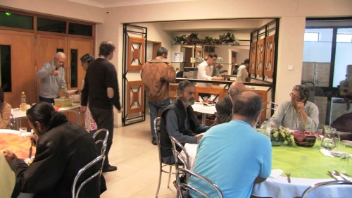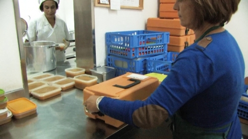 No refeitório social Nossa Senhora do Amparo são servidos todos os dias, de segunda a sexta-feira, 39 almoços aos mais necessitados. “Temos a capacidade esgotada”, refere Isabel Carvalho, voluntária da paróquia de Benfica que coordena este serviço. Iniciado em abril de 2010, este refeitório social nasceu no âmbito do projeto Igreja Solidária para “ir ao encontro dos novos desempregados, os novos pobres”, salienta. “Quando abriu, eram 14 os utentes. Neste momento vêm aqui 33 pessoas almoçar, e as restantes seis refeições são levadas a casa de famílias muito carenciadas e que estão doentes em casa”, explica. Segundo esta voluntária, frequentam diariamente o refeitório social “pessoas que vivem na rua, que vivem em quartos ou em casa de amigos, e algumas têm rendimento zero”. Há inclusive “pessoas que têm curso superior mas estão em situação muito complicada”. Para alguns destes utentes, “o almoço era a única refeição do dia” e, tendo percebido essa realidade, os voluntários deste refeitório social começaram por fazer, entre eles, uma campanha “para angariar leite, para que essas pessoas pudessem, pelo menos, beber leite com pão, ao jantar”, refere Isabel Carvalho. “Entretanto houve uma oportunidade de contactar com o Pingo Doce, que tem sido uma ajuda inestimável, porque todos os dias da semana, de segunda a Domingo vamos buscar o que eles não vendem mas que está bom. É uma fruta tocada, um pacote de arroz que caiu ao chão, muitíssimo pão, pastéis ou frangos assados que não venderam e isso permite que todos aqueles que aqui vêm almoçar possam também levar o jantar”, testemunha. Neste refeitório social, que conta com o apoio do Centro Social Paroquial de Benfica no que diz respeito à confecção e ao fornecimento das refeições, colaboram 16 voluntários de diversas idades. No entanto, “não tem qualquer comparticipação do Estado” e “sobrevive com as esmolas que os paroquianos dão para os pobres”, observa o pároco, o cónego José Traquina.