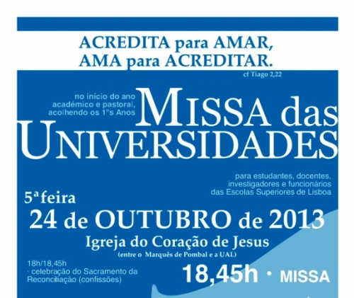 Na igreja do Sagrado Coração de Jesus, em Lisboa, D. Manuel Clemente convidou os jovens estudantes ao anúncio. “Nós somos a lenha do fogo de Deus. Cada um de vocês, onde estiver, na universidade que frequentar, é exatamente para manter o fogo vivo! Este, que ardia no coração de Cristo! No vosso coração e na vossa vida há-de arder o fogo de Cristo, e do Evangelho que Ele nos trouxe, para fazer luz!”, observou o Patriarca de Lisboa. “Se cada um de vocês der pela presença de Cristo, fogo de Deus neste mundo, este fogo pega-se e os corações começam a ficar mais quentes!”, acrescentou. Nesta celebração, promovida pelo CeUC - Pastoral Universitária de Lisboa e que decorreu no passado dia 24 de outubro, D. Manuel Clemente salientou ainda que “neste mundo frio e escuro” há “muitos corações gelados e de pedra”. Contudo, assegurou, “onde este fogo de Cristo arder, há luz e há calor!”.