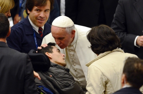 3. O Papa pediu aos deficientes mentais e físicos que não tenham vergonha de ser “um tesouro precioso da Igreja”. Num discurso aos membros da UNITALSI, uma associação italiana que se dedica ao cuidado espiritual de pessoas com deficiência, Francisco insistiu que estas têm o seu lugar na vida da Igreja e um papel a desempenhar, e criticou novamente a “cultura do descartável”. “O contexto cultural e social de hoje é bastante inclinado a esconder a fragilidade física, a encará-la unicamente com um problema, que exige renúncia e pietismo ou às vezes descarta pessoas”, referiu. No auditório Paulo VI repleto de pessoas com deficiência e seus familiares, o Papa dirigiu-se sobretudo aos deficientes, pedindo que não se considerem apenas “objetos de solidariedade e de caridade, mas sintam-se inseridos na vida e na missão da Igreja”. “Vocês têm o vosso posto, um papel específico na paróquia e no âmbito eclesial. A vossa presença, silenciosa mas mais eloquente que tantas palavras, a vossa oração, a oferta quotidiana do vosso sofrimento em união ao de Jesus crucificado para a salvação do mundo, a aceitação paciente e até alegre da vossa condição, são um recurso espiritual, um património para toda a comunidade cristã”, garantiu o Papa.