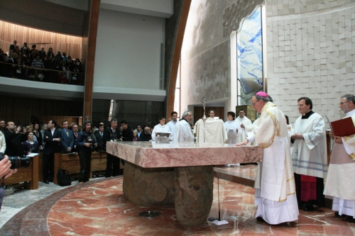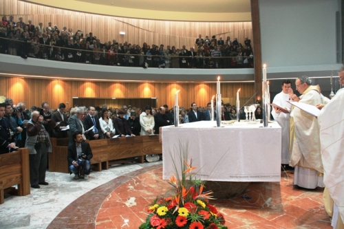 Visivelmente satisfeito pela dedicação da nova igreja, o pároco, padre Paulo Franco, começou por lembrar o “saudoso Patriarca Emérito” pelo “entusiasmo que sempre transmitiu”. “Quando me nomeou para o Parque das Nações, entre outras, deu-me a missão de construir a igreja – e não pensem que é esta, apenas, física – e hoje tenho a certeza que o senhor D. José Policarpo gostaria de estar entre nós, a participar deste mesmo acontecimento, a alegrar-se connosco, a louvar o Senhor por aquilo que significa chegarmos a este dia”. Para este sacerdote, pároco desta paróquia desde 2005, o dia da dedicação da igreja significa “muito mais do que apenas a inauguração de um espaço”. “Mais importante do que estarmos aqui hoje a dedicar este templo, é estarmos aqui hoje como comunidade, é estarmos aqui hoje como Igreja, Povo de Deus, a celebrar os sacramentos em torno do mesmo altar, vivendo a experiência da comunhão”. O padre Paulo Franco deixou igualmente “uma palavra de agradecimento” ao Patriarca de Lisboa, D. Manuel Clemente, “porque desde a primeira hora, nos tempos ainda em que como Bispo Auxiliar de Lisboa acompanhava as paróquias da cidade, confiou nesta comunidade”.
