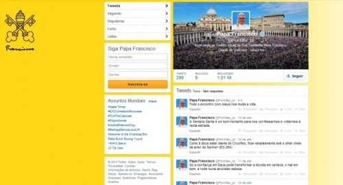 O Papa deixou uma mensagem no Twitter a propósito da Semana Santa. Na semana em que falou a futuros padres, Francisco lembrou o Dia Mundial da Juventude, em Domingo de Ramos, pediu perdão pelos crimes de pedofilia praticados por alguns padres e disse basta ao tráfico de pessoas.