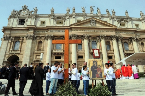 3. O Papa Francisco deu, no passado Domingo, início à Semana Santa com a bênção e procissão dos Ramos, a que se seguiu uma celebração eucarística. Milhares de jovens, de várias partes do mundo, concentraram-se na Praça de São Pedro para ouvirem o Papa, naquele Domingo que era também Dia Mundial da Juventude. Francisco lembrou que foi o Papa João Paulo II, há 30 anos, que confiou à juventude a Cruz, para que a levassem por todo o mundo como sinal do amor de Cristo pela humanidade. “A atribuição da Cruz aos jovens foi cumprida há 30 anos pelo beato João Paulo II. Ele pediu-lhes que a levassem ao redor do mundo como um sinal do amor de Cristo pela humanidade”, lembrou o Papa. “A 27 de Abril, todos teremos a alegria de celebrar a canonização deste Papa, juntamente com João XXIII. João Paulo II, que foi o iniciador das Jornadas Mundiais da Juventude, será o grande patrono”, acrescentou Francisco.