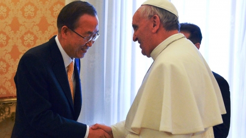 Durante a audiência, o Papa Francisco recebeu um convite de Ban Ki-moon para visitar a sede das Nações Unidas, em Nova Iorque.