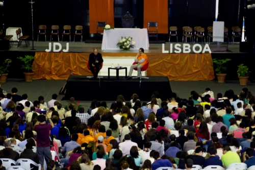 Depois de uma marcante catequese (ver caixa), foi aberto o espaço para as perguntas espontâneas: “O senhor Patriarca é feliz?”, “Como é que podemos saber o que Deus quer para nós?” ou “O senhor Patriarca já passou por crises de fé?”. Com simplicidade, D. Manuel Clemente respondeu a todas com exemplos pessoais que alegraram os jovens que o escutaram. Depois das perguntas, muitos não resistiram em pedir fotografias de grupo com D. Manuel, entre dois dedos de conversa cheios de entusiasmo. Momentos que se repetiram durante todo o dia.