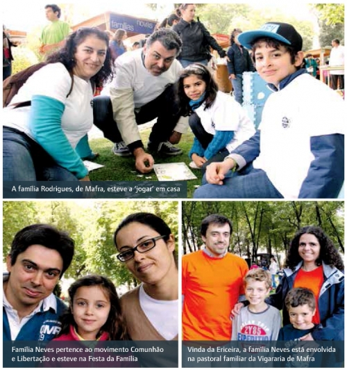 As famílias Rodrigues, Anjos e Neves são apenas três das largas dezenas de famílias cristãs que passaram o dia do passado Domingo na Festa da Família. O piquenique e os momentos de convívio e diversão fizeram as delícias de pequenos e graúdos, tal como uma exposição de desenhos das crianças. O ambiente que se viveu em Mafra, ao longo do dia, foi de festa para a Igreja de Lisboa e incluiu ainda momentos musicais, pelo grupo Anima Christi, e de testemunhos de um casal de namorados, uma família numerosa e um casal que tem dois filhos padres.