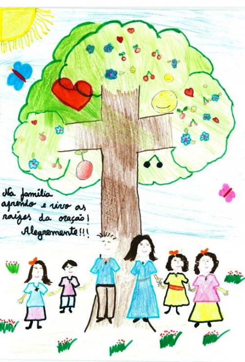 Apresentamos o desenho vencedor do concurso de desenhos da Festa da Família. O Daniel Correia tem 10 anos e pertence à paróquia do Milharado. Desenhou a sua família, onde “aprende e vive as raízes da oração alegremente.”