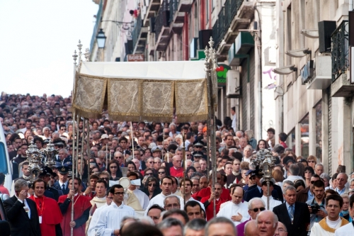A solenidade do Corpo de Deus e, em particular, a Procissão que lhe está associada, para além de uma afirmação da presença real de Cristo nas espécies eucarísticas e, portanto, da Sua presença no meio da cidade, convida igualmente cada cristão a reafirmar a fé na Eucaristia.