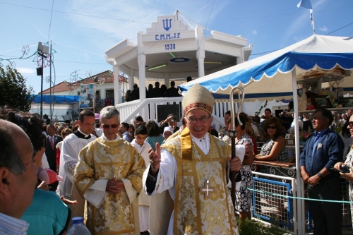 No passado Domingo, 14 de setembro, durante a Missa campal, o Patriarca de Lisboa, D. Manuel Clemente, enalteceu o papel de Nossa Senhora, “que deu a Deus a humanidade que Ele não tinha”. “Aquele Menino que a bendita Imagem da Senhora da Nazaré transporta ao colo, foi o Menino que Ela recebeu de Deus para O pôr no mundo, fazendo algo completamento inédito que nunca houvera antes nem nunca haverá depois, porque agora há sempre”, garantiu. Frisando que “Nossa Senhora disse ‘sim’ a Deus”, o Patriarca desafiou os cristãos “a aceitarem Deus como Ela O aceitou”. As festas de Nossa Senhora da Nazaré na Encarnação ficam também marcadas pela entrega, por parte da família Belmonte, da igreja à paróquia, com o Patriarca de Lisboa a agradecer a esta família a doação que agora foi concretizada após muitos anos de burocracia.