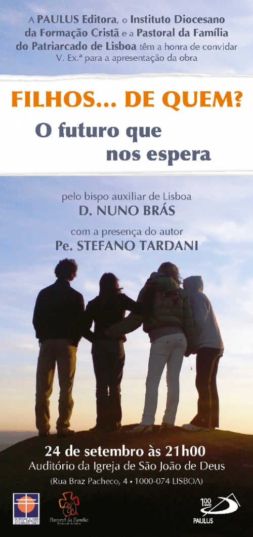 ‘Filhos... de quem? O futuro que nos espera’, da autoria do padre Stefano Tardini, vai ser apresentado por D. Nuno Brás, Bispo Auxiliar de Lisboa, numa sessão com entrada livre que decorre no próximo dia 24 de setembro, quarta-feira, pelas 21h00, no auditório da igreja São João de Deus, em Lisboa.