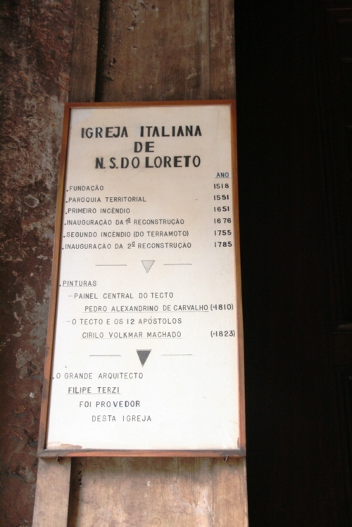 O mais antigo documento que temos fala da existência da “Casa de Nossa Senhora do Loreto” e tem a data do dia 29 de outubro de 1530. Este documento, que se refere ao pedido dos Italianos ao rei D. João III, para isenção de uma taxa sobre o terreno, indica que a igreja já existia. De facto, num documento mais recente, encontramos que a Igreja de Nossa Senhora do Loreto foi aberta ao culto no dia 8 de fevereiro de 1522.