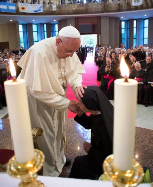Um dia, caminhava numa rua quando foi abordada por uma mulher, que pertencia a uma família comunista, que lhe pediu para baptizar o filho. Podia ser uma armadilha. Mas como dizer não? Ali mesmo, em plena rua, pegou num pouco de água, verteu-a sobre a cabeça da criança e baptizou-a. Arriscou tudo naquele gesto. Arriscou a própria vida. Hoje, ao lembrar esse episódio, ao lado do Papa Francisco, a Irmã Maria Caleta diz-se assombrada pela sua própria coragem, por ter feito tanto com tão pouco.