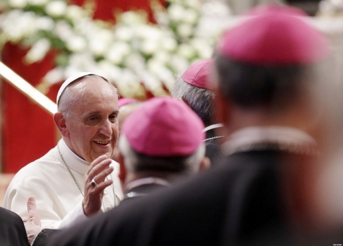 Perante quase duas centenas de bispos, entre os quais D. Manuel Clemente, Patriarca de Lisboa e presidente da Conferência Episcopal Portuguesa, o Papa Francisco lembrou o “dever” de serem “servidores” da Igreja de Cristo: “Todos os bispos, em comunhão com o Sucessor de Pedro, têm a missão e o dever de custodiá-la e de servi-la, não como donos, mas como servidores. O Papa, neste contexto, não é o senhor supremo, mas sim um supremo servidor, o garante da obediência e da conformidade da Igreja à vontade de Deus, ao Evangelho de Cristo e à tradição da Igreja, deixando de lado todo arbítrio pessoal, mesmo sendo – por vontade do próprio Cristo – o ‘Pastor e Doutor supremo de todos os fiéis’”.