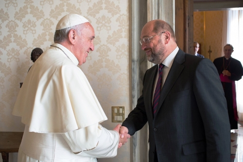 4. O presidente do Parlamento Europeu (PE) foi recebido pelo Papa Francisco, no passado dia 30 de outubro, no Vaticano. No encontro que se realizou a um mês da visita do Papa ao Parlamento Europeu, o presidente do PE, Martin Schulz, projetou essa visita como “uma ocasião única para as duas partes”. “Vamos receber no Parlamento Europeu a personalidade que, neste momento histórico, é provavelmente um ponto de referência não só para católicos mas também para muitas pessoas, um elemento de orientação numa época em que muitas pessoas, pelo contrário, estão verdadeiramente desorientadas”, salientou. O Papa Francisco vai visitar o Parlamento Europeu, em Estrasburgo, no próximo dia 25 de novembro.