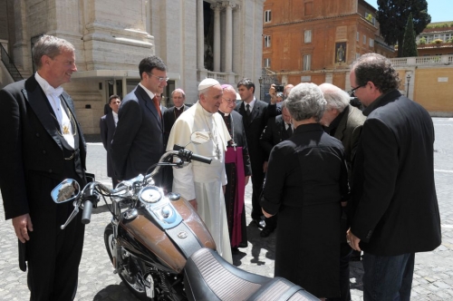 5. A criatividade de Francisco para ajudar os pobres continua a marcar pontos. Preocupado com a situação dos sem-abrigo na cidade eterna, o Papa decidiu pegar nalguns presentes que tem recebido e dar-lhes um outro destino. Primeiro, foi uma Harley Davidson, uma marca de culto no mundo das motas. Novinha em folha, oferecida ao Papa pelo fabricante norte-americano, Francisco resolveu leiloá-la, no ano passado e dar o dinheiro ao centro de acolhimento dos sem-abrigo da estação ferroviário Termini, em Roma. Resultado do leilão: o modelo daquela mota custava 15 mil euros; rendeu 241 mil euros. Agora, Francisco pegou em vários objetos oferecidos, só que, desta vez, em vez de os leiloar, decidiu rifá-los! Cada rifa custa 10 euros e qualquer pessoa pode adquiri-las em lojas oficiais do Vaticano, incluindo correios e gabinetes de apoio ao turista e ao peregrino. E o que se pode ganhar por 10 euros? 1º prémio: um irresistível Fiat Panda 4x4 novinho em folha e de cor branca, como convém num carro papal. 2º prémio: uma bicicleta de corrida azul celeste. 3º, 4º e 5º prémios: mais bicicletas. Depois, ainda se pode ganhar um chapéu branco, uma máquina de café, relógios, molduras ou uma série de "prémios de consolação", não especificados.