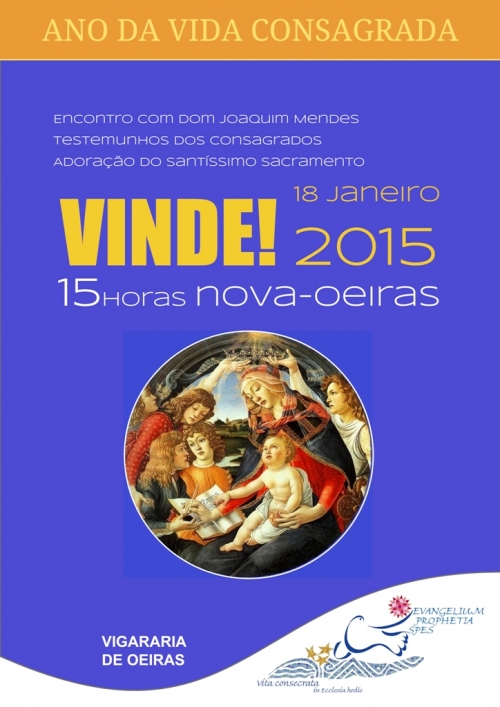 Neste Ano dedicado à Vida Consagrada, a Vigararia de Oeiras realiza, no próximo dia 18 de janeiro, Domingo, um encontro com os fiéis das comunidades paroquiais e dos institutos e congregações de vida consagrada e movimentos eclesiais.