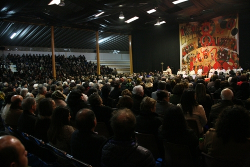 Após este encontro, o Patriarca de Lisboa presidiu à celebração da Eucaristia, no Pavilhão Stella Maris, com que inaugurou a Visita Pastoral à Vigararia de Alcobaça-Nazaré. “A palavra religião é uma palavra muito usada, e também muito abusada, que significa essencialmente ligação, ou religação, que temos ou queremos ter com Deus. Nós não queremos viver desligados, mas se vivemos ligados a um Deus, que é este, o de Jesus Cristo, que é o Deus de todos, então vivemos ligados a todas as criaturas, sobretudo a todos os seres humanos que são obra e criação do mesmo Deus. É por isso que a religião cristã é absolutamente social e comprova-se na nossa atitude em relação aos outros, como na vida de Jesus”, apontou. Perante um pavilhão cheio de fiéis, vindos das 15 paróquias desta vigararia, D. Manuel Clemente retomou, na sua homilia, o tema dos ataques terroristas em França, que já tinha exposto em declarações ao Jornal VOZ DA VERDADE (ver capa desta edição). “Todos nós, desde quarta-feira, temos ouvido aqueles noticiários terríveis do que se passou em França e mais uma vez, usando e abusando do nome de Deus em vão, a mortandade que lá aconteceu. Não pode ser… é exatamente o contrário da religião. Quem vive ligado a Deus, vive ligado a todas as criaturas de Deus e sobretudo a cada homem e mulher, independentemente de acordo ou desacordo, nisto temos que ser unânimes no respeito por todos e cada um. Por isso, no nosso caso, é sobretudo em nome da religião que nós dizemos: ‘Não poder ser, é intolerável qualquer atendado contra a vida humana, contra a liberdade e a responsabilidade de cada um, concretamente no que à expressão diz respeito’”, manifestou, num tom forte e decidido, o Patriarca de Lisboa.