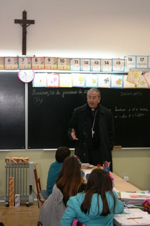 A Visita Pastoral à paróquia de Évora de Alcobaça, que tem como pároco o padre Ivo Santos, iniciou-se na noite de quinta-feira, dia 29 de janeiro, com Missa e jantar nas Fragosas, a que se seguiu a reunião com o Conselho Pastoral e Económico da paróquia. A sexta-feira, 30 de janeiro, foi dia de visitar as crianças, os idosos, as entidades civis e alguns empresários da zona. A manhã começou na Escola do Areeiro, a escola primária que o pequeno José Traquina frequentou, no final dos anos 50, início da década de 60, e que hoje tem cerca de quatro dezenas de alunos. O agora Bispo Auxiliar de Lisboa referiu às crianças que também ele tinha estado sentado naqueles lugares e ouviu os professores explicarem que atualmente a escola tem somente duas turmas, uma com crianças do 1º e 2º ano e uma outra com os alunos do 3º e 4º ano. Aos pequenos, D. José Traquina falou da sua vocação e garantiu: “Ninguém é feliz sozinho! Ser padre é colaborar na felicidade dos outros”.