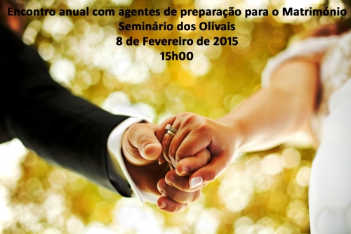 Especialmente para todos aqueles que estão envolvidos na preparação para o Matrimónio, importa assinalar a realização do 1º Encontro Anual que vai ter lugar no Seminário dos Olivais a 8 de Fevereiro, domingo, a partir das 15.00h.