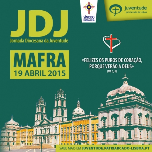 No próximo dia 19 de abril, todos os jovens da Diocese de Lisboa estão convocados para mais uma Jornada Diocesana da Juventude (JDJ). Juntamente com o nosso Bispo, D. Manuel Clemente, celebraremos o que nos une – a nossa Fé em Jesus Cristo. É grande o entusiasmo dos jovens de Mafra para acolher os jovens de toda a diocese. Tudo está a ser feito para que esta JDJ seja inesquecível para quem nela participa e para quem, nesse Domingo, se cruzar com animação, o entusiasmo e a alegria próprios de quem se sabe as razões da sua esperança.