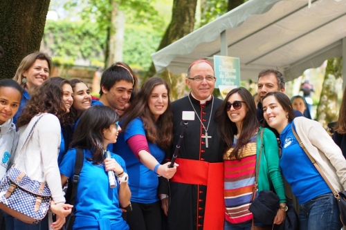O momento alto da manhã foi o encontro dos jovens com o Cardeal-Patriarca de Lisboa. De pé, D. Manuel Clemente fez luz sobre a bem-aventurança que deu o mote ao dia. “O coração é o que cada um de nós tem de mais seu, no que mais sente, no que mais pensa, no que mais sonha; o coração somos nós no mais profundo do nosso ser”, afirmou. Que pureza de coração é esta de que se fala na bem-aventurança? “É ser puro no mais profundo de si, na maneira de sentir, na maneira de ver, na maneira de agir, na maneira de reagir, na maneira de estar sozinho, na maneira de estar com os outros. Ser puro de coração é ter um coração como é o de Deus; temos que ser puros para ver a Deus. Temos que ter o coração como o de Deus para podermos encontrar-nos verdadeiramente”, disse D. Manuel Clemente dando como exemplo a vida de vários santos. “O problema da nossa vida é que o nosso coração tem muita mistura. Há aqui muita coisa misturada que não é esta pureza que nos permite ver a Deus. Nós podíamos vê-l’O se tivéssemos um coração puro, porque Deus está em tudo e em todos. Há quem tenha conseguido ser feliz por ter um coração puro: Marcel Callo, Pier Giogio Frassati, Chiara Luce, Francisco de Assis, Santa Teresa de Lisieux e tantos outros”, lembrou o Cardeal-Patriarca, salientando que este dom não lhes é exclusivo: “Isto está ao alcance de todos vocês”, garantiu. A maneira de lá chegar é “cultivar no coração os sentimentos que todos eles cultivaram, que são os sentimentos de Jesus”. Porque “se tivermos um olhar sem sombras, somos capazes de admirar, de ver e renascer com cada dia que nos é oferecido, mesmo quando está a chover”. Para ficar na memória, o cardeal português fez questão de repetir e escutar dos jovens as seguintes palavras: “Só vê a Deus quem vê como Deus”.