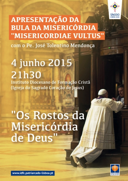 O Instituto Diocesano da Formação Cristã (IDFC), do Patriarcado de Lisboa, promove a apresentação da bula de proclamação do Jubileu da Misericórdia, ‘Misericordiae Vultus’, numa conferência com o tema ‘Os Rostos da Misericórdia de Deus’, que vai decorrer no próximo dia 4 de junho, quinta-feira, às 21h30, com o padre José Tolentino Mendonça. Esta sessão de apresentação vai decorrer na igreja do Coração de Jesus, ao Marquês, em Lisboa.
