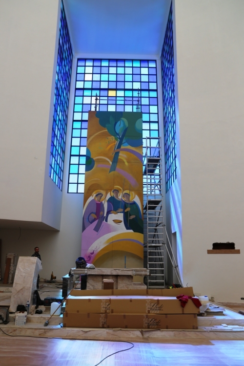 Além do centro pastoral, esta primeira fase das obras contemplou também a estrutura do piso inferior da igreja, onde vão ficar duas capelas mortuárias e uma espécie de garagem. “E parámos por aí”, conta o padre Daniel. O projeto só foi retomado há meio ano. “Em novembro passado, retomámos as obras da igreja da Santíssima Trindade, que vai ser dedicada na Missa vespertina da Solenidade da Santíssima Trindade. Como foi pensada no ano 2000, no início do Jubileu, a nova igreja tem esta invocação”.