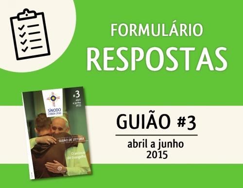 O formulário online para envio das respostas ao Guião de Leitura #3 (abril a junho de 2015), com o tema ‘O anúncio do Evangelho’, encontra-se disponível no site oficial do Sínodo Diocesano 2016, em http://sinodo2016.patriarcado-lisboa.pt. Mantém-se também disponível, para a recolha das respostas, individuais ou de grupo, o email oficial do Sínodo Diocesano 2016: sinodo2016@patriarcado-lisboa.pt.