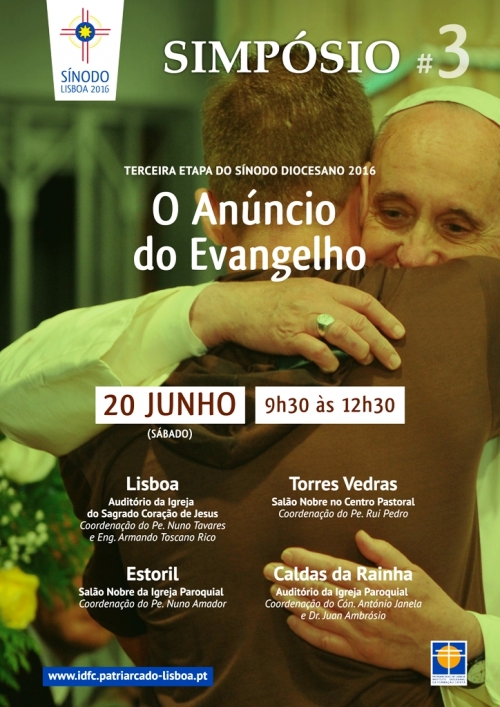 O Simpósio sobre o Guião #3, com o tema ‘O anúncio do Evangelho’, foi organizado pelo Instituto Diocesano da Formação Cristã (IDFC), do Patriarcado de Lisboa, e decorreu na manhã do passado sábado, em simultâneo, em quatro locais da diocese: Estoril (salão nobre da igreja paroquial), Lisboa (igreja do Coração de Jesus), Torres Vedras (centro pastoral) e Caldas da Rainha (auditório da igreja paroquial).