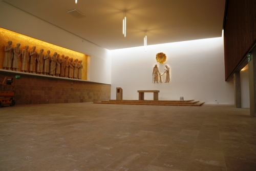 Um grande painel apostólico – com Cristo ao centro, de braços abertos, em atitude de acolhimento, ladeado à esquerda e à direita pelos 12 apóstolos – é uma das esculturas que marcam a nova igreja de Porto Salvo, na Vigararia de Oeiras. “A Igreja apostólica é, para mim, a visão que eu tenho da Igreja. Jesus deu a cada um dos apóstolos uma missão e nós hoje temos que viver essa missão como expressão do desejo que Jesus nos trouxe. Como batizados, temos de sentir que temos uma missão a cumprir, tal como aqueles 12. Nós somos os continuadores dessa vida apostólica; por isso, este painel é, a meu ver, o sintoma do fundamento – porque sobre eles foi fundada a Igreja – e é a projeção do futuro que todo o cristão deve ter presente na sua vida”, refere ao Jornal VOZ DA VERDADE o pároco de Porto Salvo, padre Abílio Lucas, autor da ideia de criação do painel apostólico.