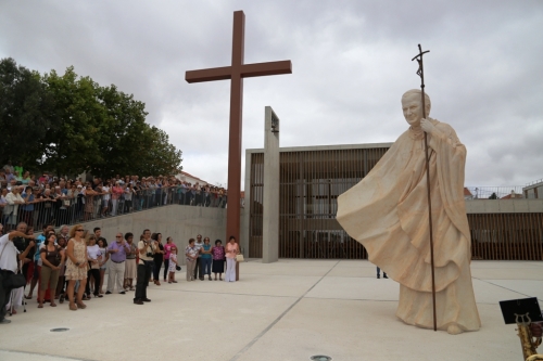 Tem 5,20m de altura, é feita de alabastro e está a ‘acolher’ aqueles que chegam à nova igreja de Porto Salvo. Situada numa praça com o nome do Papa polaco, a Estátua São João Paulo II, da autoria de Carlos Oliveira, autor da Cruz da Teologia do Corpo e que pertence às Equipas de Nossa Senhora, foi inaugurada no passado Domingo, dia 19, numa celebração que o pároco de Porto Salvo considerou ser “um aperitivo” para “a grande festa” da dedicação da igreja de São Joaquim e Santa Ana, neste Domingo, 26 de julho. “Sempre que invoquei João Paulo II para este projeto, senti que a mão dele estava a interceder”, garante o padre Abílio ao Jornal VOZ DA VERDADE.