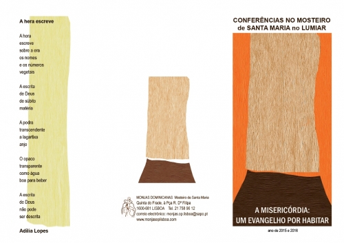 ‘A Misericórdia: um Evangelho por habitar’ é o tema das Conferências no Mosteiro 2015/16, promovidas pelas Monjas Dominicanas do Lumiar, em Lisboa, que têm início no dia 10 de outubro, com o padre Tolentino Mendonça a falar sobre ‘A desconcertante misericórdia de Jesus’. Os temas seguintes são refletidos nos dias 14 de novembro, 12 de dezembro, 9 de janeiro de 2016, 13 de fevereiro, 12 de março, 9 de abril e 14 de maio, naquele que será a conferência conclusiva.