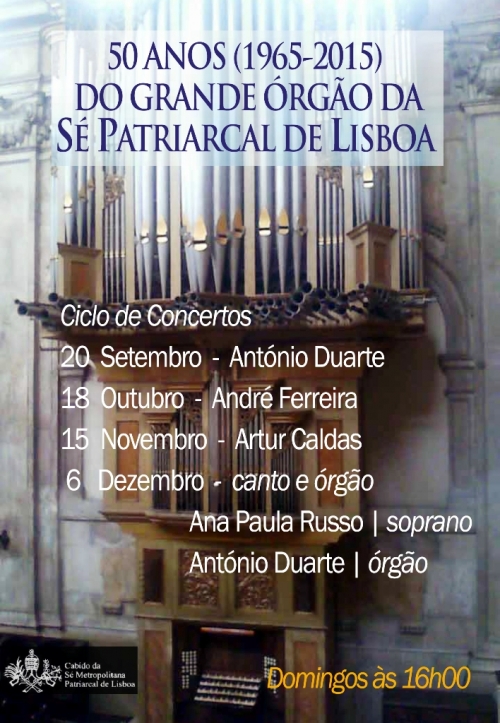 Promovida pelo Cabido da Sé Metropolitana Patriarcal de Lisboa, esta iniciativa tem ainda mais dois concertos agendados: 15 de novembro, com o organista Artur Caldas, e 6 de dezembro, com um concerto de canto e órgão, com a soprano Ana Paula Russo e o organista António Duarte.