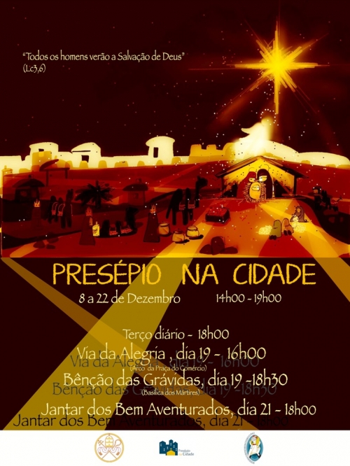 A Rua Garrett, junto à Basílica dos Mártires, na Baixa de Lisboa, vai acolher o ‘Presépio na Cidade’, este ano com o lema ‘Todos os homens verão a Salvação de Deus’ (Lc 3,6). De 8 a 22 de dezembro, entre as 14h00 e as 19h00, este projeto de leigos católicos que nasceu em Lisboa no ano 2000 pretende “celebrar em grande festa o Nascimento de Jesus”. Destaque ainda para a Via da Alegria, no dia 19 de dezembro, a partir das 16h00, no Arco da Praça do Comércio, que termina com a Bênção das Grávidas, às 18h30, na Basílica dos Mártires.