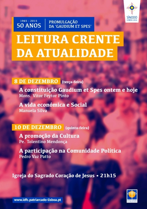 A igreja do Coração de Jesus, em Lisboa, acolhe, nos dias 8 e 10 de dezembro, a partir das 21h15, as sessões da ‘Leitura Crente da Atualidade’, sobre os 50 anos (1965-2015) da promulgação da ‘Gaudium et Spes’, do Papa Paulo VI.