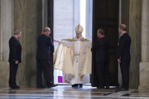 2. Está aberta a Porta Santa na Basílica de São Pedro, em Roma. No dia 8 de dezembro, Solenidade da Imaculada Conceição, poucos minutos depois das 10h00, Francisco transpôs a porta seguido do seu antecessor Bento XVI e depois cardeais, bispos e representantes de sacerdotes, religiosos, religiosas e leigos. Foi o momento alto da cerimónia de início do Jubileu da Misericórdia. Durante a homilia, Francisco explicou o que pretende deste Jubileu. “Devemos antepor a misericórdia ao julgamento e, em todo o caso, o julgamento de Deus será sempre feito à luz da sua misericórdia. Por isso, oxalá o cruzamento da Porta Santa nos faça sentir participantes deste mistério de amor. Ponhamos de lado qualquer forma de medo e temor, porque não se coaduna em quem é amado; vivamos, antes, a alegria do encontro com a graça que tudo transforma”.