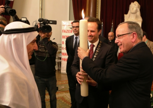 Um dos momentos altos da cerimónia aconteceu quando uma família iraquiana, de apelido Alqais, pai, mãe e três filhos, a residir em Portugal há cerca de seis anos, acendeu o Círio da Luz da Paz, feito à mão e com mais de 13 anos e o entregou às mãos de D. Manuel Clemente e Fernando Medina. De seguida, cinco jovens vestidos com as cores dos cinco continentes (azul/Europa, amarelo/Ásia, preto/África, verde/Oceânia e vermelho/América) colocaram a Luz da Paz na varanda dos Paços do Concelho.