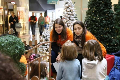 As crianças não foram esquecidas na Missão Lx. No centro comercial CascaiShopping, que fica situado no espaço geográfico da paróquia de Alcabideche, os jovens da Missão Lx foram presença diária ao longo da semana missionária, convidando os mais pequenos a irem junto da árvore de Natal deste espaço comercial para ouvirem “a verdadeira história do Natal”, como salienta o padre Hugo. O ‘Conto de Natal’ era contado quatro vezes ao dia e foram muitas as crianças que ficaram a conhecer a história do Menino Jesus. O conto terminava com um cântico natalício, que fez as delícias dos pequenos e de seus pais, que de telemóvel na mão iam registando fotograficamente o momento. Bem junto da árvore de Natal, numas pequenas mesas, havia ainda o desafio de pintar a lápis de cor vários desenhos de presépios, anjos, Reis Magos e, claro, da Sagrada Família.