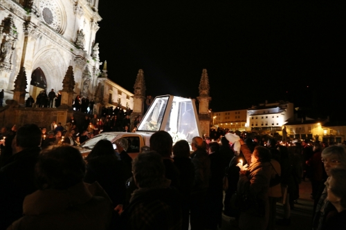 Foi com fogo-de-artifício, desde o castelo, que Alcobaça recebeu a Imagem Peregrina de Nossa Senhora de Fátima. “Maria, como disse o Concílio Vaticano II e antes do Concílio tanta gente o disse, é verdadeiramente a imagem, o ícone da Igreja, aquilo que nós todos devemos ser no acolhimento de Jesus Cristo, no seu seguimento, na sua oferta ao mundo, para glória de Deus Pai e no impulso do Espírito”, observou o Cardeal-Patriarca de Lisboa, na Missa que presidiu, no Mosteiro de Alcobaça, no final da tarde do passado Domingo, 17 de janeiro, o primeiro dia de Nossa Senhora de Fátima na diocese. “Aquilo que aconteceu em Maria, há dois mil anos e assim pôs Cristo no mundo e O seguiu na Terra até ao fim e agora com Ele na glória, é o que há de acontecer com todos nós, os cristãos. Porque esse Espírito que recebemos no Batismo foi esse mesmo Espírito que n’Ela operou inteiramente a oferta de Jesus Cristo, Senhor e Salvador de todos e de cada um”, apontou D. Manuel Clemente.