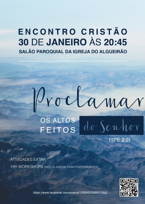 O Centro Comunitário da Paróquia do Algueirão acolhe, no próximo dia 30 de janeiro, sábado, às 20h45, o VI Encontro Cristão, este ano com o tema ‘Chamados a proclamar os altos feitos do Senhor’, que pretende, segundo um comunicado, “recordar o chamamento que Deus faz a cada um”. “Tal como os discípulos no caminho de Emaús, somos chamados a partilhar as experiências vividas e assim descobrir que, na nossa caminhada comum, Jesus Cristo está no meio de nós”, salienta a nota acerca do encontro que vai contar com a presença de várias Igrejas cristãs e ter workshops para jovens, a partir das 17h00.