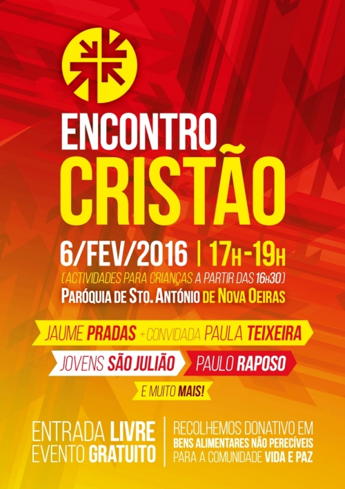 ‘ADN - Amor de Deus em Nós’ é o tema do I Encontro Cristão da Grande Lisboa que se vai realizar no dia 6 de fevereiro, sábado, das 16h30 às 19h00, no salão da paróquia de Santo António de Nova Oeiras, e que vai contar com a presença de várias Igrejas cristãs. “Sim, o nosso ADN é Cristo em Pessoa, pelo que Lhe daremos todo o destaque neste Encontro Cristão. Para tal queremos convidar amigos a virem conhecer Aquele que jamais parou de nos amar: Jesus! Da música à pintura, passando sempre pela Palavra, iremos todos celebrar a Vida que n’Ele há!”, refere um comunicado.