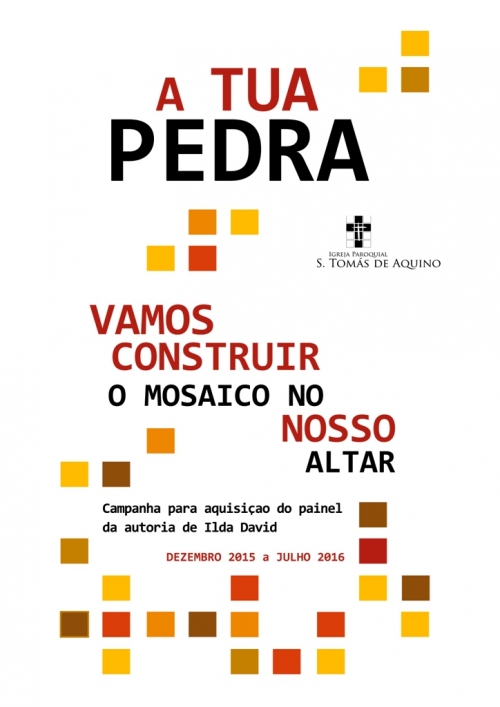A paroquia de São Tomás de Aquino, em Lisboa, iniciou no final do ano passado a campanha ‘A tua Pedra’, que pretende revestir as paredes do altar da igreja paroquial com milhares de pedras de muitas cores e tamanhos. “Cada pedra terá um nome. Escreva o seu nome, o nome de um familiar, de um amigo ou de alguém especial. Apadrinhe este projeto! Informe-se no Atendimento sobre as pedras e como pode colaborar. Com a sua ajuda, a igreja pode tornar-se mais bela!”, desafia uma nota da paróquia, referindo que cada pedra tem o custo de 1 euro.