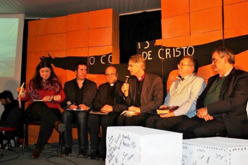 Toda a plateia, segundo um comunicado, “foi convidada a dar expressão ao seu ‘sim’, ao seu compromisso com Jesus, assinando o seu nome em caixas brancas, peças de uma cruz, que, no final, ficou construída”.