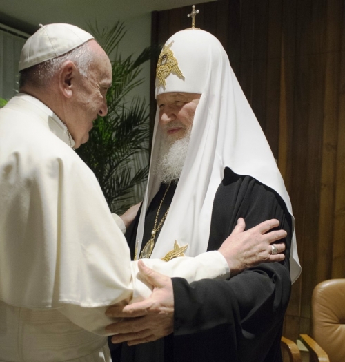 4. O Papa Francisco e o Patriarca Kirill de Moscovo tiveram um encontro histórico e privado em Cuba, no dia 12 de fevereiro. Nunca um Papa e um Patriarca de Moscovo se tinham encontrado, até porque o Patriarcado foi fundado apenas algumas décadas antes do grande cisma entre a Igreja Católica e a Ortodoxa. Os dois líderes religiosos estavam sorridentes quando se encontraram e cumprimentaram-se com três beijos, como é característico entre os ortodoxos. Francisco usou a palavra “irmão” e as expressões “finalmente” e “somos irmãos”. Por sua vez, Kirill referiu que agora “as coisas são mais fáceis”. O Papa respondeu: “É claro que esta é a vontade de Deus”.