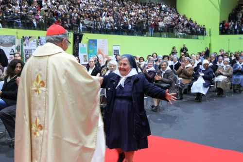 Aqui em Lisboa, em belíssima coincidência com a visita da imagem da Virgem Peregrina, estivemos em Odivelas, num pavilhão multiusos (neste caso, para uso da celebração da fé cristã na relevante devoção a Maria) repleto de alguns milhares de pessoas a celebrar o encerramento da Vida Consagrada. A Mãe da Misericórdia, na imagem da Senhora de Fátima, a todos nos acolheu como mãe de fecunda ternura. Foi emocionante sentir os aplausos aos consagrados e consagradas que celebraram jubileus de 25, 50, 60 e 75 anos de vida consagrada. Maria a todos abraçou no seu manto materno. D. Manuel Clemente a todos agradeceu pelo dom de vidas doadas ao serviço da Igreja no Patriarcado de Lisboa.