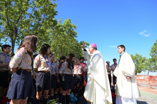 O Dia de São Jorge da Região de Lisboa juntou cerca de 5 mil escuteiros de toda a diocese no Parque do Cevadeiro, em Vila Franca de Xira. Foi no passado dia 23 de abril, sábado, e desde as 9 horas da manhã que, bem junto à Praça de Touros, os ‘escutas’ foram chegando para atividades e encontro. “O Escutismo não pode ser visto como um reflexo ou fruto da sociedade que temos. O Escutismo tem de ser considerado como uma boa proposta, e um grande contributo, para a renovação da sociedade”, salientou D. José Traquina, Bispo Auxiliar de Lisboa, na Eucaristia com que concluiu esta festa dos escuteiros.