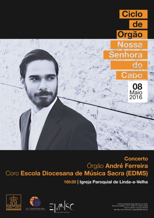 O próximo concerto do Ciclo de Órgão Nossa Senhora do Cabo convida “a disfrutar das sonoridades multicolores do órgão Dinarte Machado de 32 registos”, segundo um comunicado, e vai ter lugar no Domingo dia 8 de maio, às 16h30, na igreja de Linda-a-Velha, com entrada livre. Durante este Concerto de Órgão e Coro, pelo organista André Ferreira e os coros da EDMS (Escola Diocesana de Música Sacra), vão ser tocadas “obras para órgão de Franz Liszt e Oivier Messiaen e peças para coro de Diamantino Faustino, celebrando a alegria da Páscoa”, refere a nota.