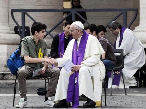 3. No início do Jubileu dos Adolescentes, no sábado, dia 23, o Papa Francisco surpreendeu os jovens ao participar numa celebração penitencial, ouvindo de confissão. A Praça de São Pedro foi transformada num confessionário ao ar livre, com 150 sacerdotes prontos a ouvir os participantes, em várias línguas, ao longo de oito horas. De acordo com a Rádio Vaticano, o Papa confessou 16 jovens.