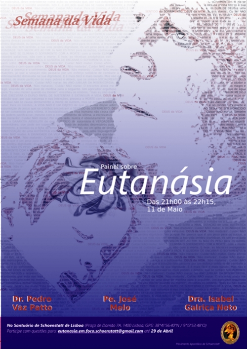 O Movimento de Schoenstatt organiza, no dia 11 de maio, quarta-feira, entre as 21h00 e as 22h15, um painel sobre o tema da eutanásia, que vai decorrer no Santuário de Schoenstatt, no Restelo.