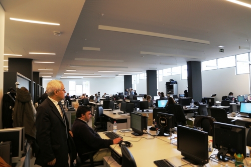 Sem nunca perder a identidade original de uma quinta, o novo edifício está envolvido por espaços verdes, com um pequeno pomar e um “prado já semeado”, aponta João Aguiar Campos, durante a visita. Subindo ao primeiro andar de uma nova casa ‘grande’, mas onde “os espaços não sobram”, o sacerdote destaca a importância dos Recursos Humanos para a empresa. “Queremos que o espaço dos Recursos Humanos não sejam apenas um escritório de processamento de salários mas, desde o recrutamento à formação, tudo tenha de passar por aqui porque são os promotores daquilo que mais importante temos que é o capital humano”, sublinha. Neste primeiro andar de um dos ‘braços’ do corpo central do edifício, encontram-se também salas de reunião, gabinetes da gerência e outros gabinetes de produção e trabalho.