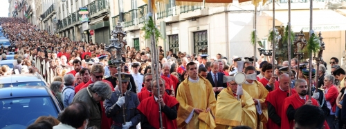 Retomada a tradição de se celebrar o Corpo de Deus na quinta-feira a seguir ao primeiro Domingo depois do Pentecostes, as ruas da Baixa de Lisboa receberam milhares de fiéis que quiseram testemunhar uma das mais participadas manifestações de fé no coração da cidade. Antes, na parte da manhã do passado dia 26 de maio, na Sé de Lisboa, o Cardeal-Patriarca presidiu à Missa da Solenidade do Santíssimo Corpo e Sangue de Cristo começando por lembrar a narrativa de São Paulo sobre a ‘Ceia do Senhor’, escutada na celebração, para recordar a condição de “memória em torno de um sacramento” e a responsabilidade da “missão” que são comuns a cada cristão. Os cristãos são “a memória de quanto Jesus disse e fez, e de como se disse no que fez. A Ceia foi a última, porque já nada mais há a assinalar, quando num gesto se resume a vida inteira, com o seu significado para Deus e para todos. Aquele pão feito corpo, indicava quem o dizia assim, pois tudo nele fora oferta, não guardando para si nada do que recebera do seu Pai”, referiu D. Manuel Clemente, na homilia da celebração.